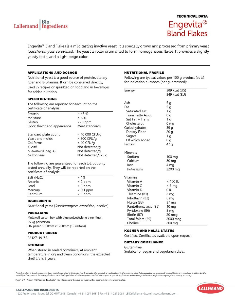 Sastāvdaļas: žāvēts neaktīvs pārtikas raugs.