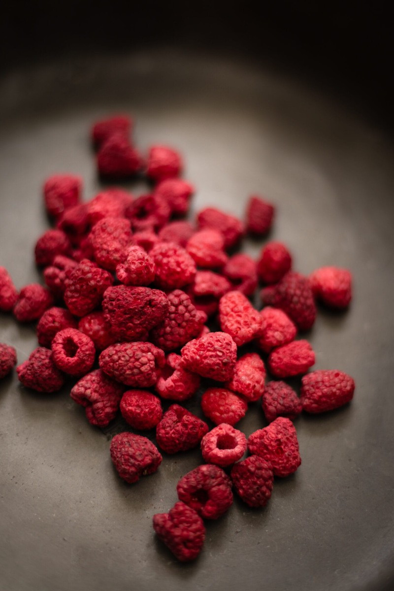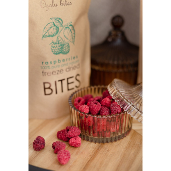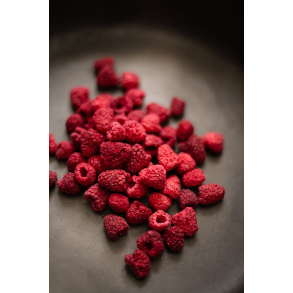 Košas krāsas, izteikti skābas un aromātiskas liofilizētas Latvijas avenes. 100% dabīgs našķis bez pievienota cukura, piemērots veģetāram un vegānam uzturam.