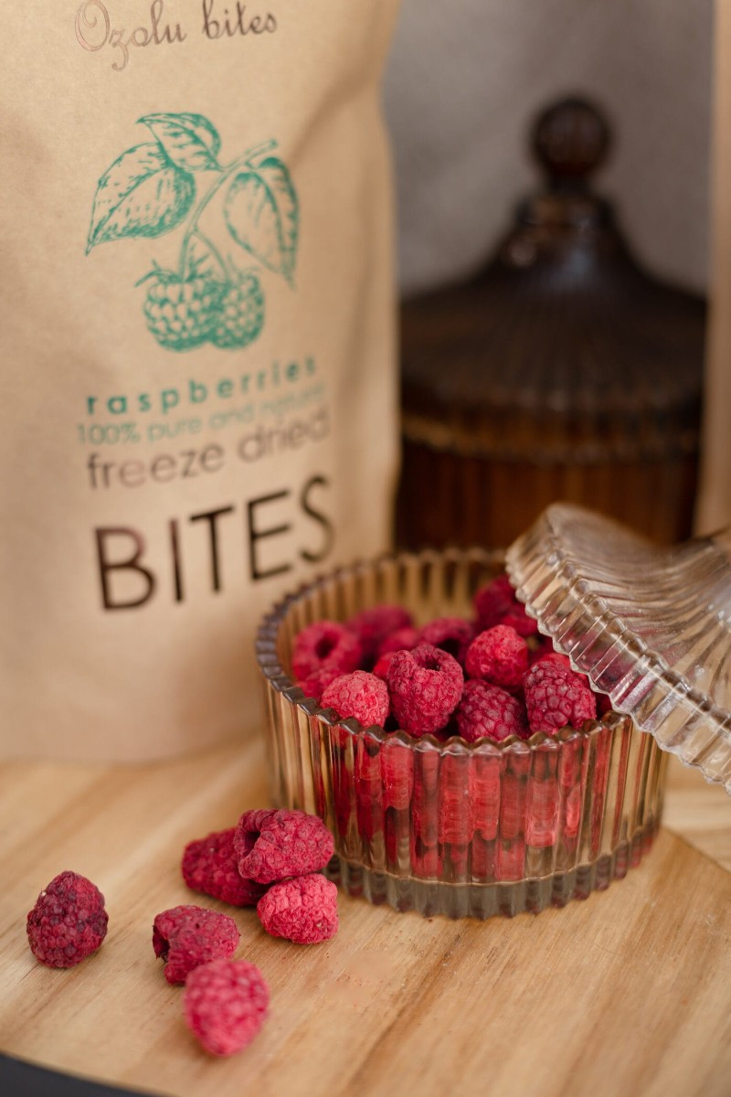 Aukstumā žāvētas jeb lioflizētas Latvijas avenes.