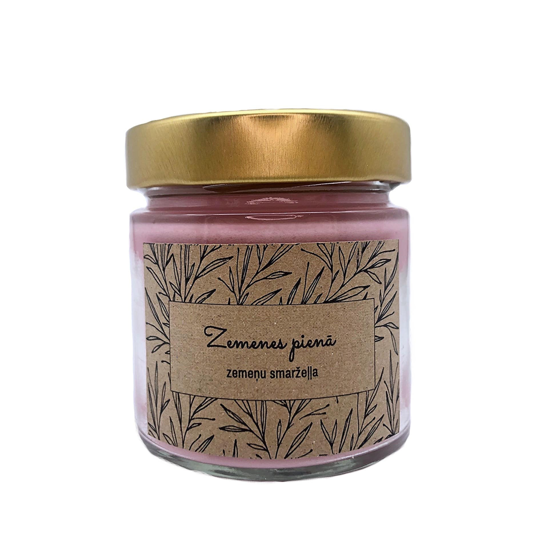 Aromātiskā dabīgā vaska svece stikla burciņā, zemene pienā