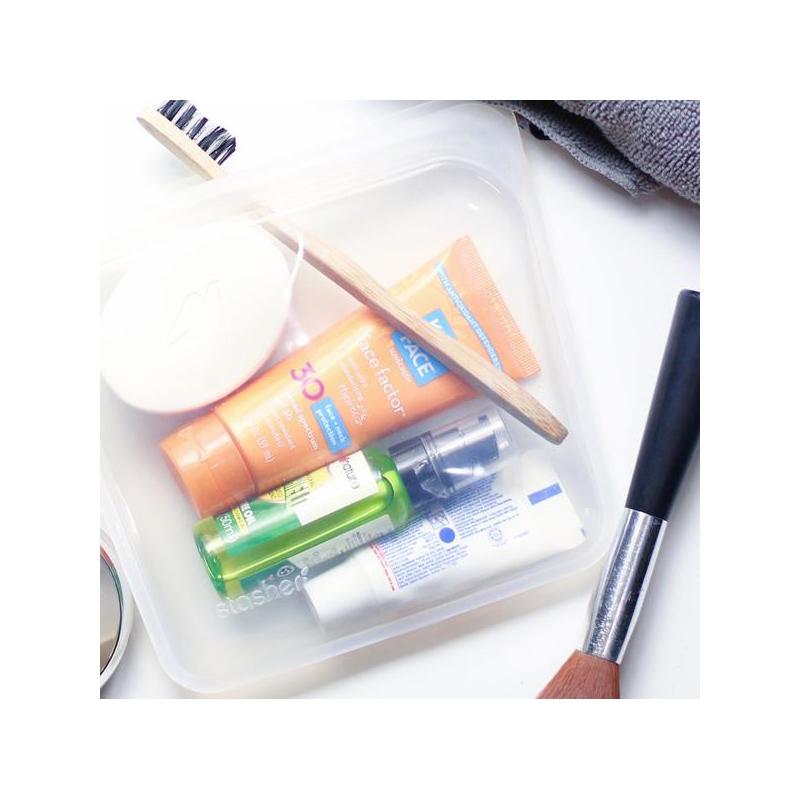 Izgatavots no 100 % dabīga, ar platīnu apstrādāta silikona, Stasher ir piemērots pārtikai, izturīgs pret temperatūru un ilgmūžīgs, tajā pat laikā tas nesatur BPA un BPS un neizraisa alerģiju, tāpēc tas ir drošs cilvēkiem un planētai.