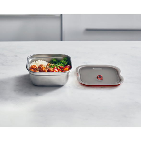 Vakuuma vāka fiksators nodrošina, ka šī sērija ir 100% necaurlaidīga un hermētiska, kas nozīmē arī to, ka sagatavotās maltītes ilgāk saglabājas svaigas un samazinās pārtikas izšķērdēšana. Abpusējs ieguvums!